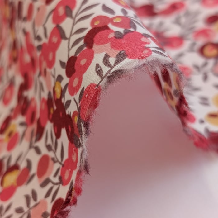 ・輸入リバティプリントは、ミミ端に色抜けやズレがあるため、当店では有効生地幅を約130cmとご案内しております。