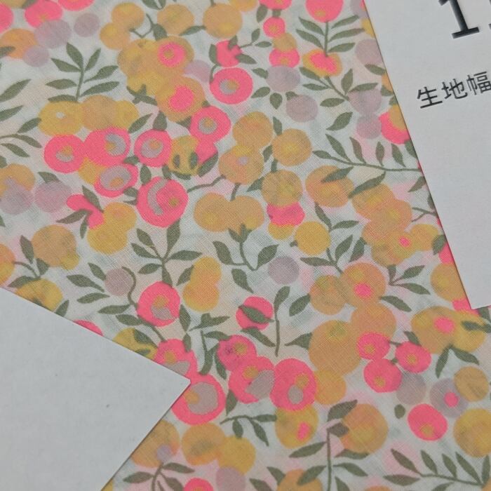 ・輸入リバティプリントには、耳(ミミ)部分に「LIBERTY」の文字が印刷されていないものが多くございます。また、ロゴがある場合でもカット位置により含まれない場合がございます。