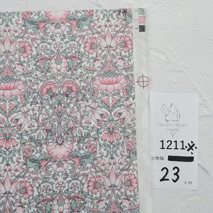 ・輸入リバティプリントには、耳(ミミ)部分に「LIBERTY」の文字が印刷されていないものが多くございます。また、ロゴがある場合でもカット位置により含まれない場合がございます。