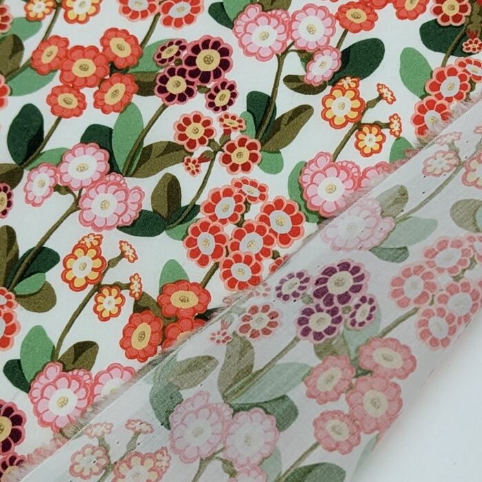 リバティ・ファブリックス タナローン Primula Park プリムラ・パーク オレンジ/ピンク 約108×50cm