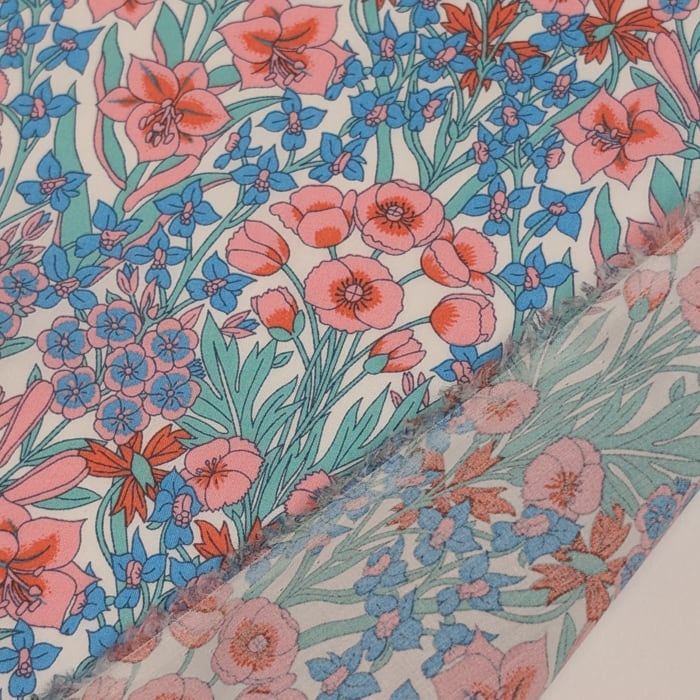 説明欄確認要◆輸入 リバティ LIBERTY タナローン Mountain Primrose マウンテン・プリムローズ コーラルピンク/スカイブルー 約130×50cm
