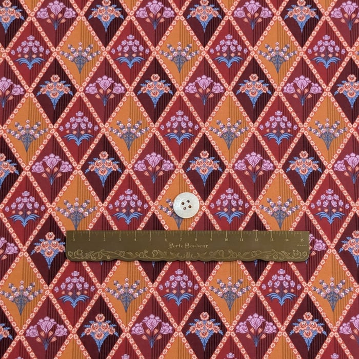 リバティ・ファブリックス タナローン Floral Harlequin フローラル・ハーレクイン オレンジ&ワインレッド 約108×50cm