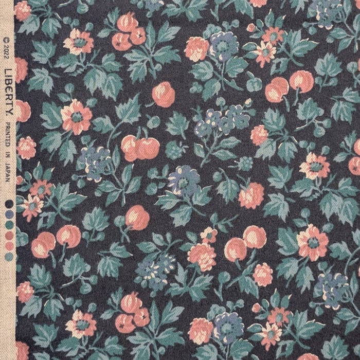 リバティ・ファブリックス ●エアリーコット生地● Babette バベット ネイビー地/ピンク実 約108×50cm