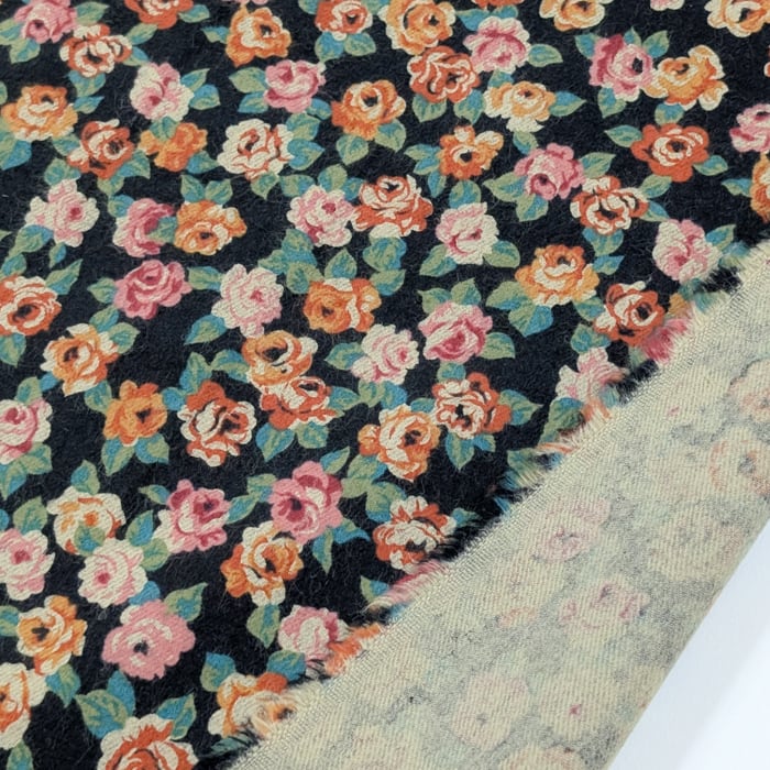 リバティ・ファブリックス ●エアリーコット生地● Hedrium ヘドリウム 黒地&オレンジ 約108×50cm