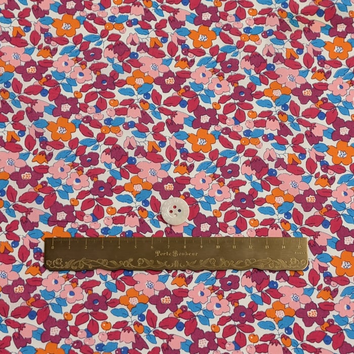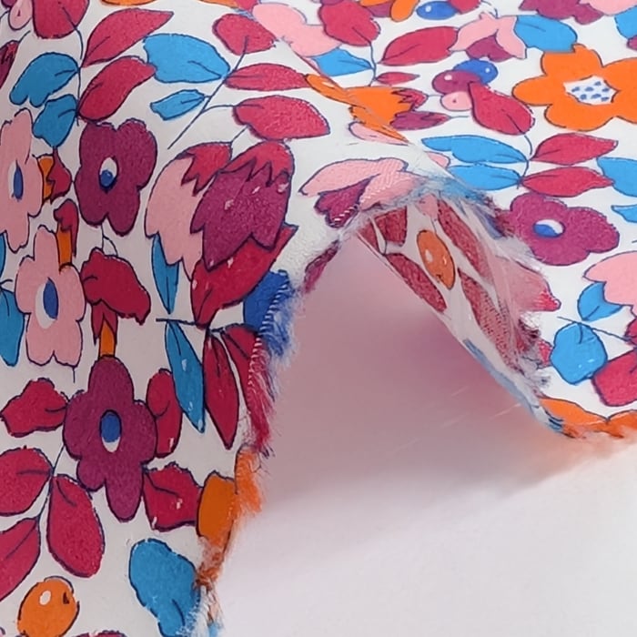 ・輸入リバティプリントは、ミミ端に色抜けやズレがあるため、当店では有効生地幅を約130cmとご案内しております。