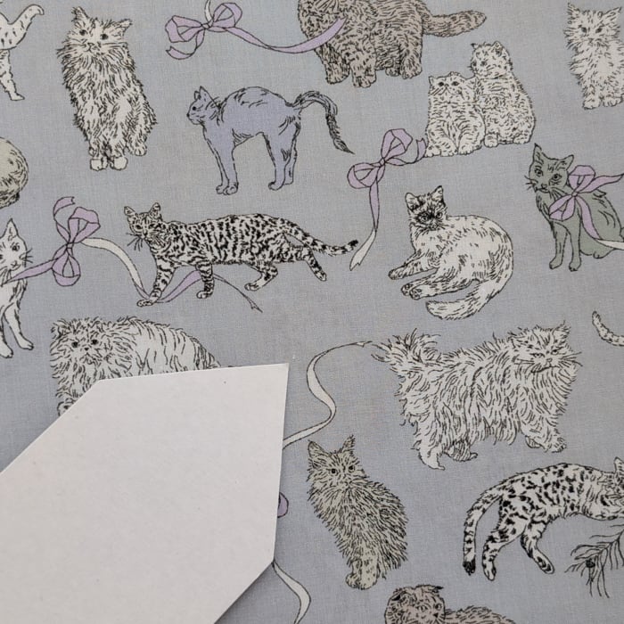 愛らしいキャラクター豊かな猫たちが、遊んだりくつろいだり、思い思いに動き回る会話のようなパターンです。リバティの人気デザイン「ミャウ(Meow)」から着想を得たこの新たな作品は、日本と英国のリバティスタッフが実際に飼っている猫たちをモチーフにしています。鉛筆で描かれたイラストは、リボンや蝶結びの間を遊び回る猫たちの愛らしい仕草と、自由でユーモラスな個性を見事に捉えています。