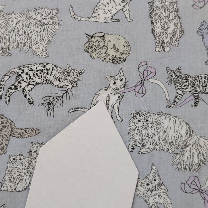 愛らしいキャラクター豊かな猫たちが、遊んだりくつろいだり、思い思いに動き回る会話のようなパターンです。リバティの人気デザイン「ミャウ(Meow)」から着想を得たこの新たな作品は、日本と英国のリバティスタッフが実際に飼っている猫たちをモチーフにしています。鉛筆で描かれたイラストは、リボンや蝶結びの間を遊び回る猫たちの愛らしい仕草と、自由でユーモラスな個性を見事に捉えています。