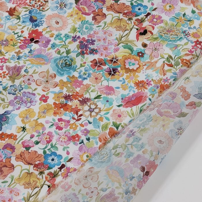 ・輸入リバティプリントは、ミミ端に色抜けやズレがあるため、当店では有効生地幅を約130cmとご案内しております。