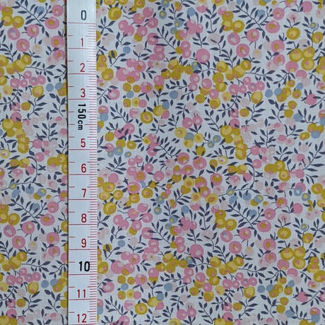 ・輸入リバティプリントは、ミミ端に色抜けやズレがあるため、当店では有効生地幅を約130cmとご案内しております。