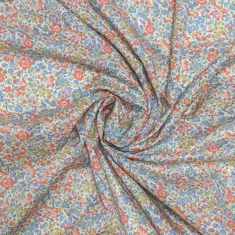 ・輸入リバティプリントは、ミミ端に色抜けやズレがあるため、当店では有効生地幅を約130cmとご案内しております。