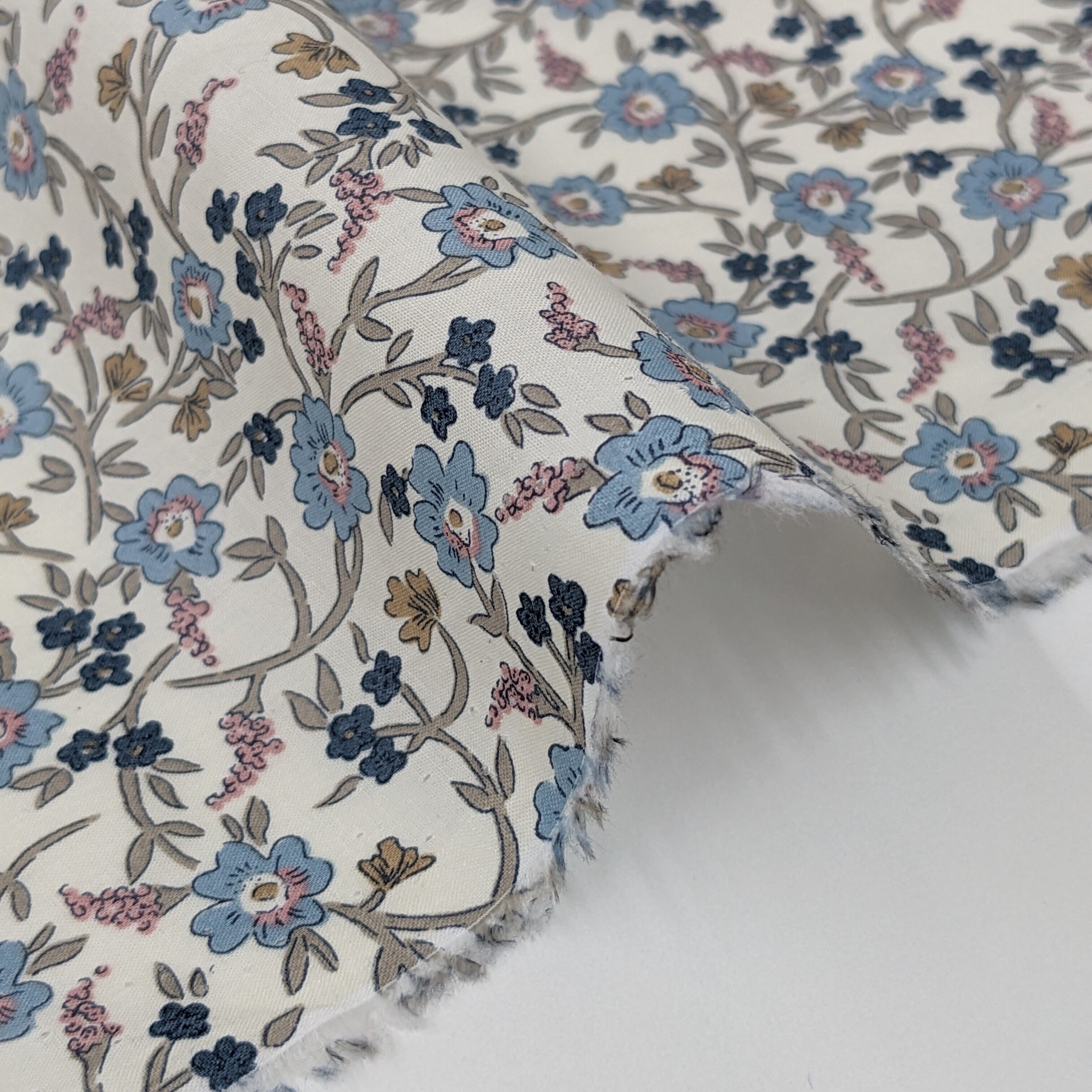 ・輸入リバティプリントは、ミミ端に色抜けやズレがあるため、当店では有効生地幅を約130cmとご案内しております。