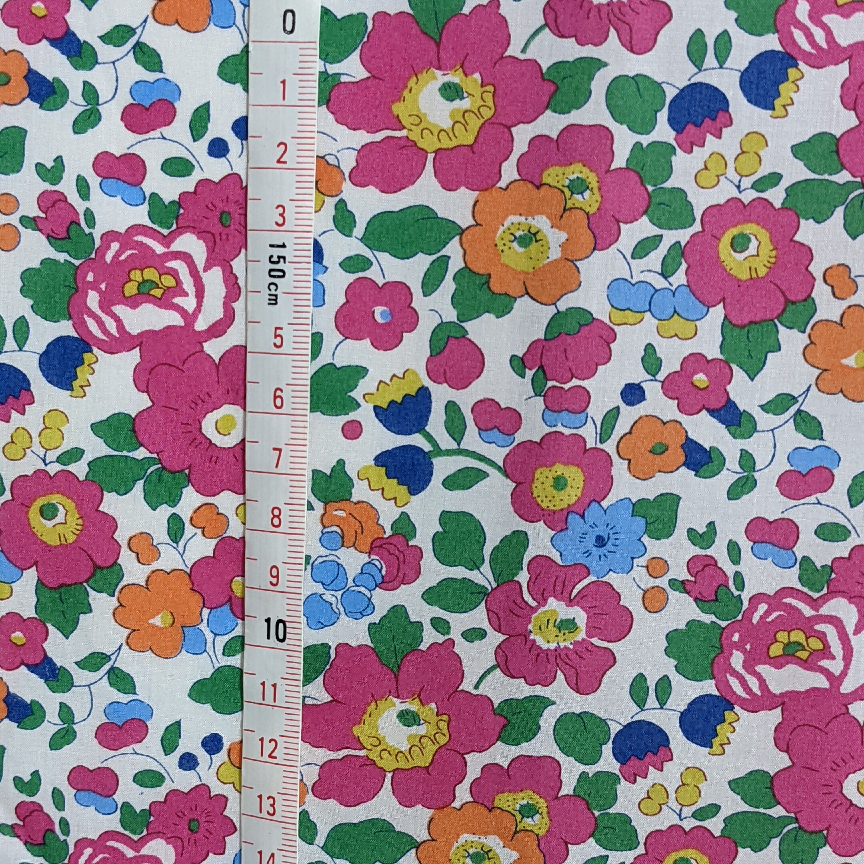 ・輸入リバティプリントは、ミミ端に色抜けやズレがあるため、当店では有効生地幅を約130cmとご案内しております。