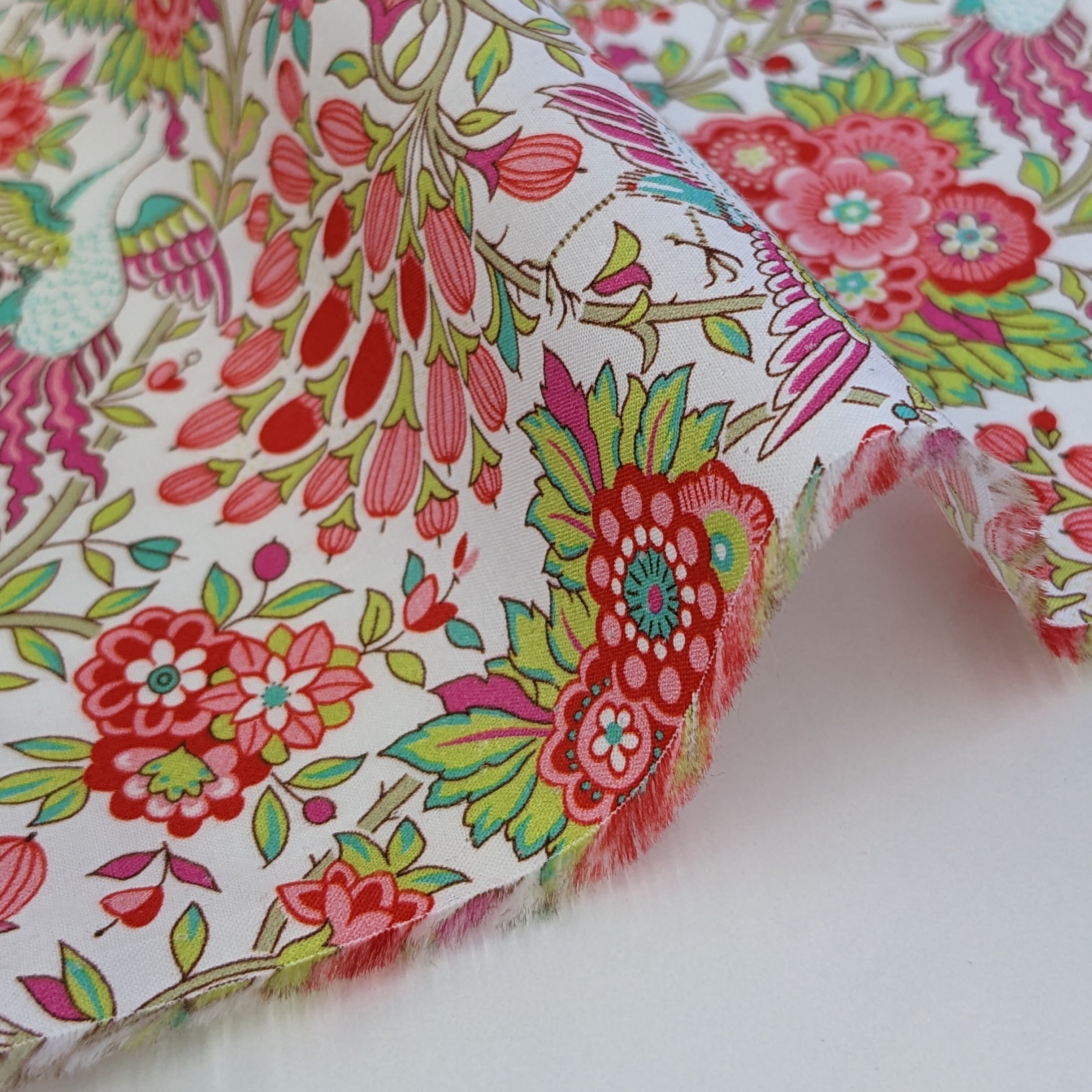 ・輸入リバティプリントは、ミミ端に色抜けやズレがあるため、当店では有効生地幅を約130cmとご案内しております。