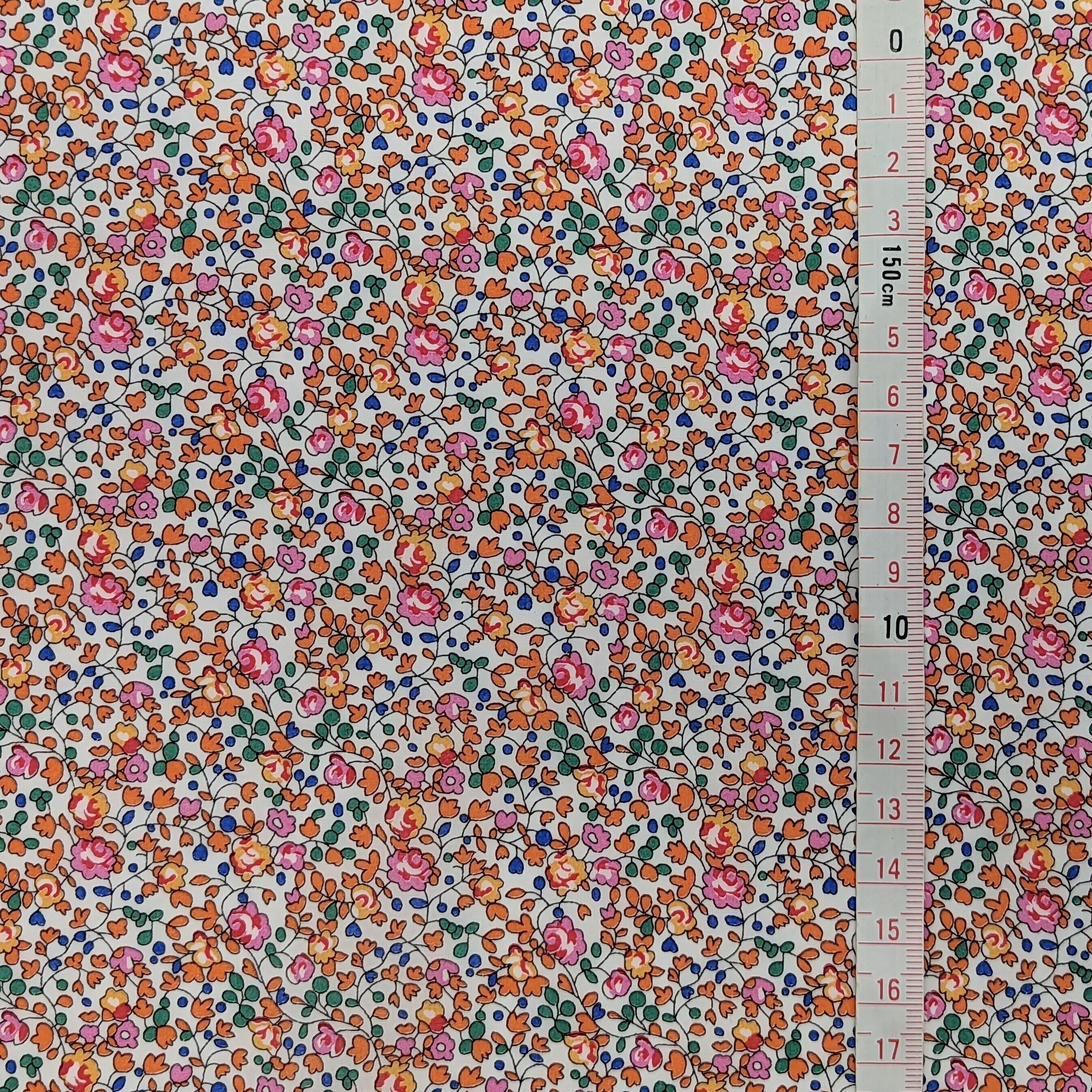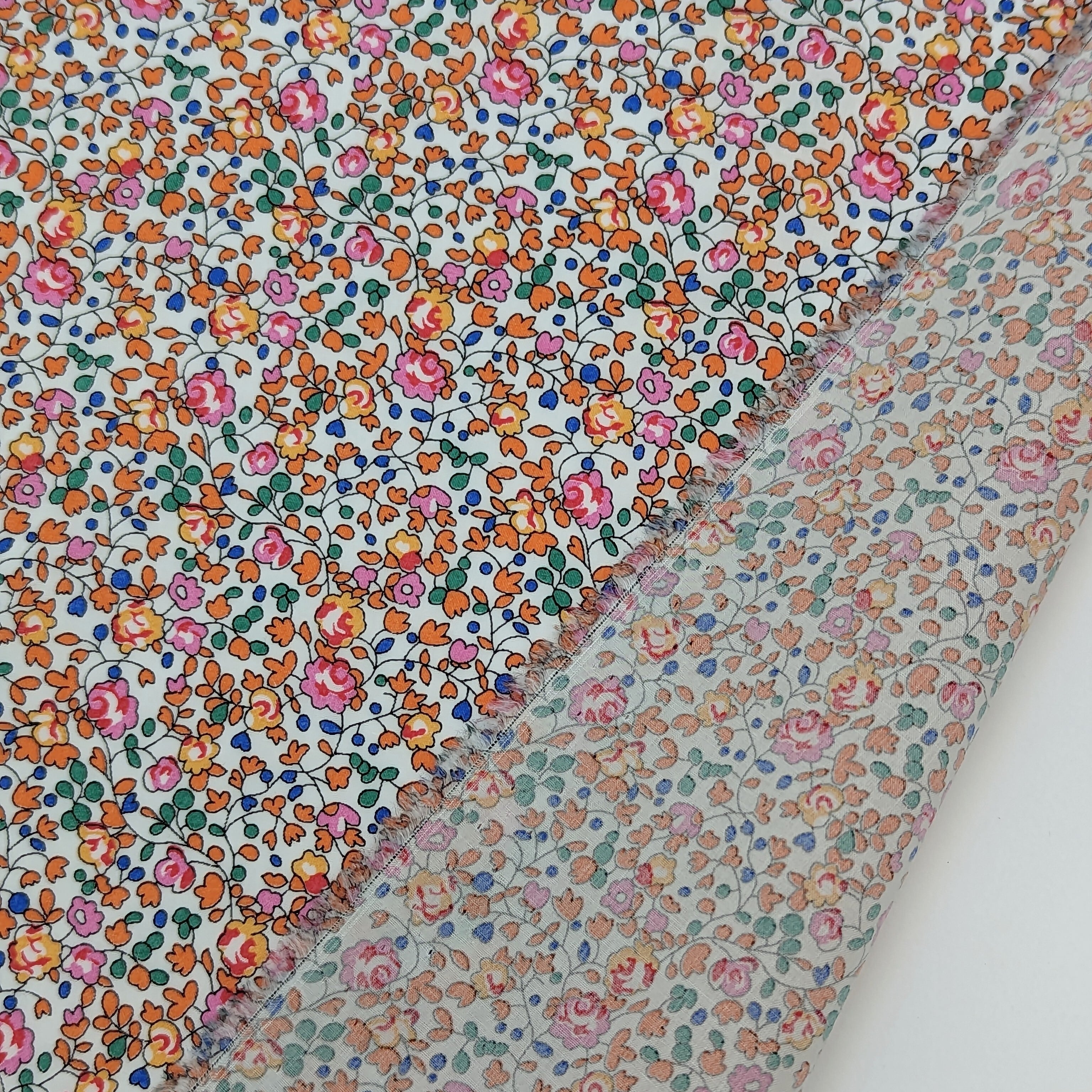 ・輸入リバティプリントは、ミミ端に色抜けやズレがあるため、当店では有効生地幅を約130cmとご案内しております。