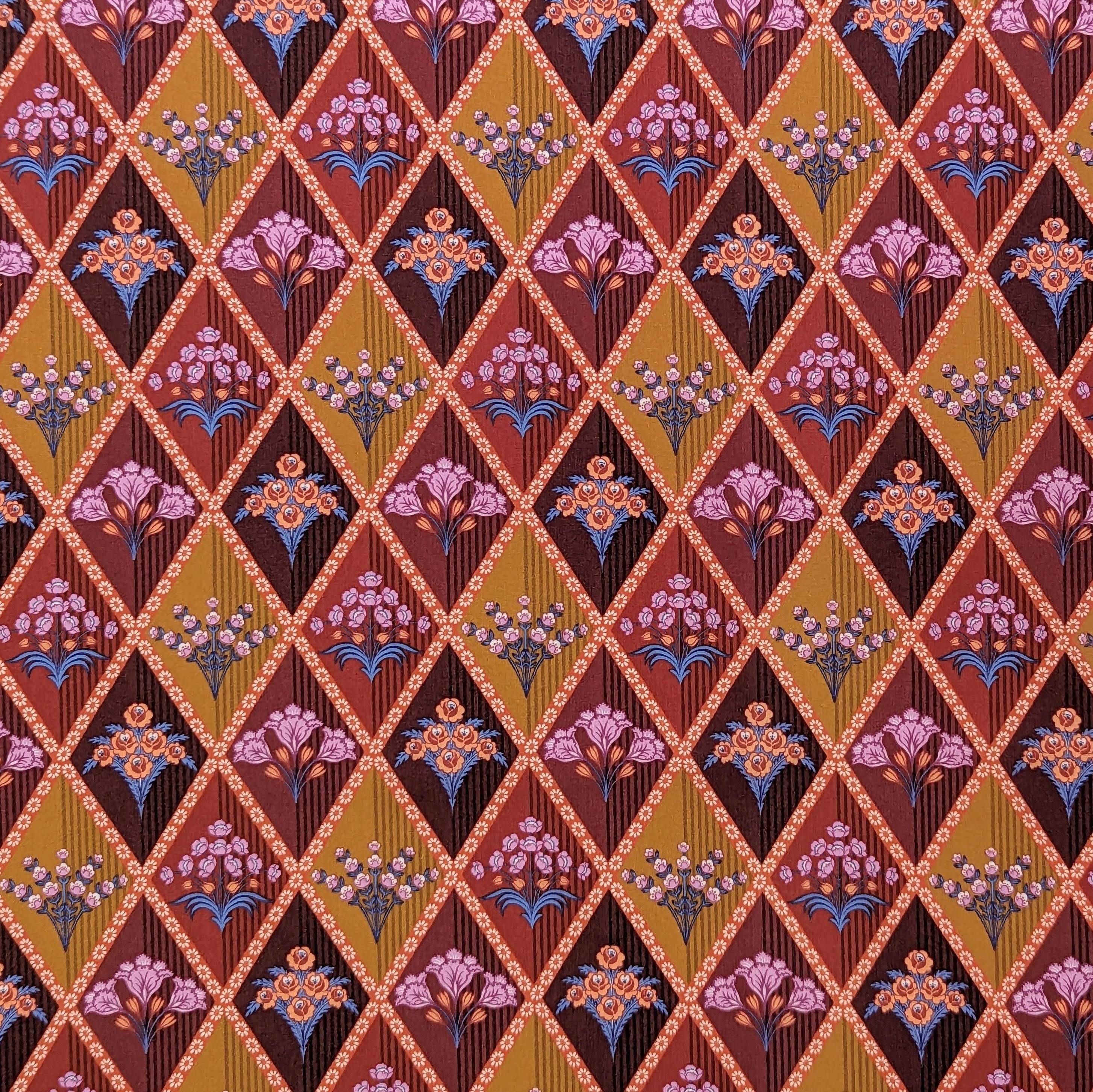◆輸入 リバティ LIBERTY タナローン Floral Harlequin フローラルハーレクイン オレンジ&ワインレッド 約130×50cm