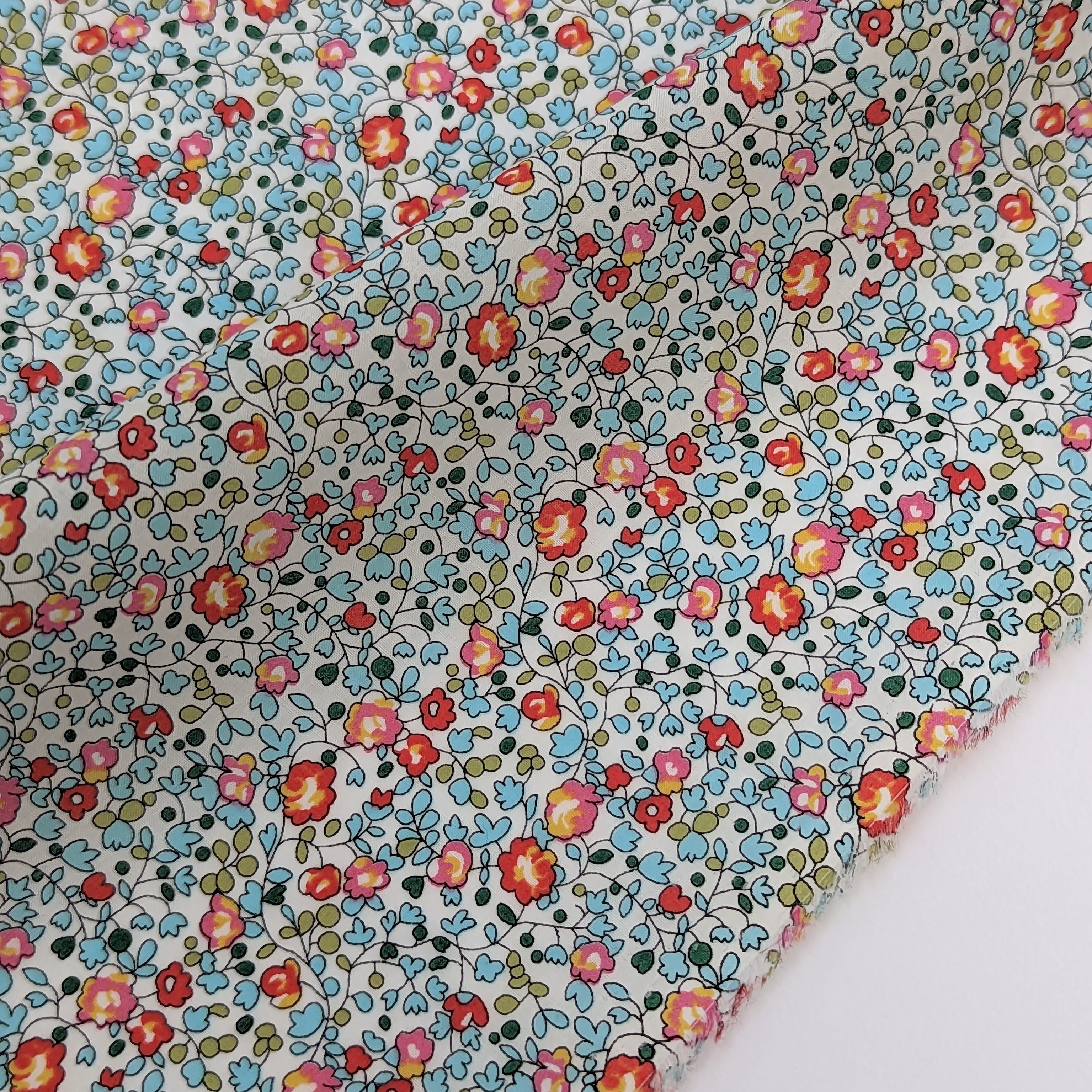 ・輸入リバティプリントは、ミミ端に色抜けやズレがあるため、当店では有効生地幅を約130cmとご案内しております。