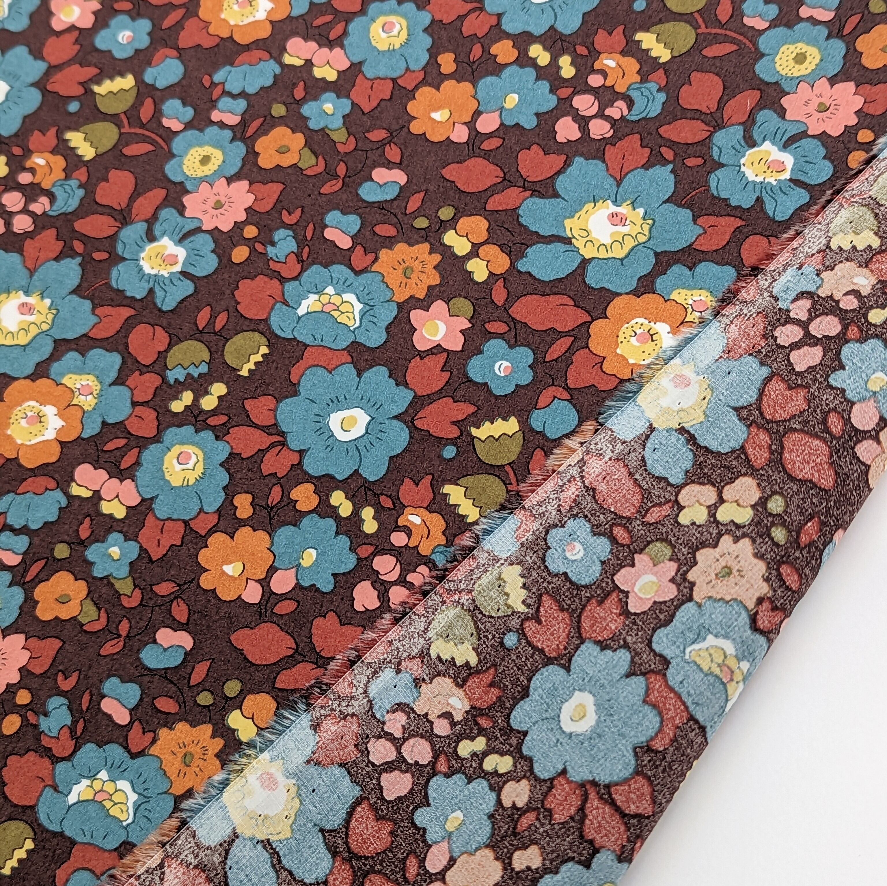 ・輸入リバティプリントは、ミミ端に色抜けやズレがあるため、当店では有効生地幅を約130cmとご案内しております。