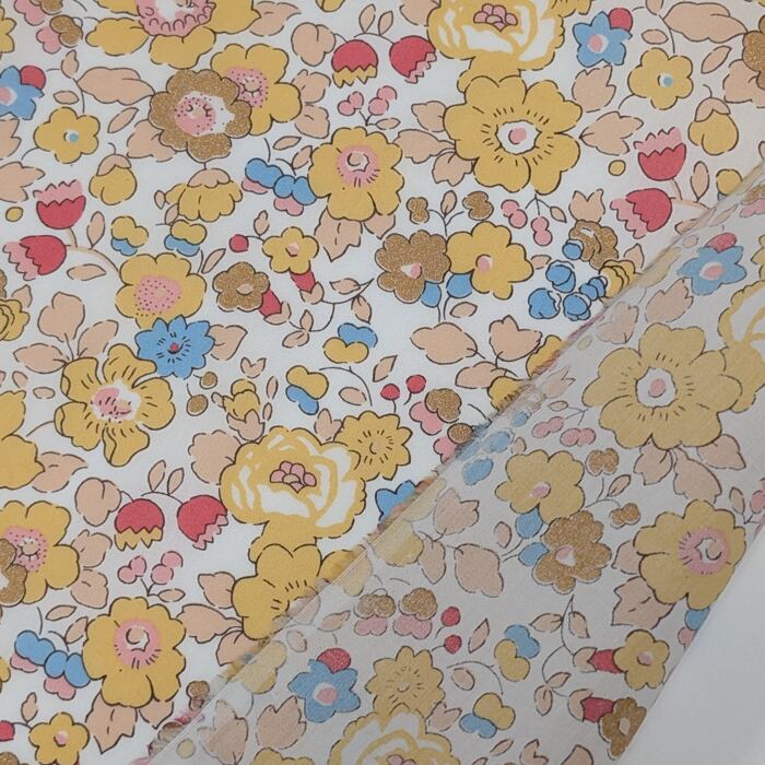 説明欄確認要★輸入 リバティ・ファブリックス イタリア製 タナローン Betsy イエロー/ゴールドグリッター 約130×50cm