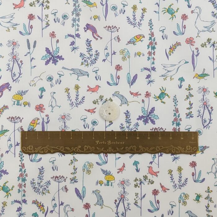 ・輸入リバティプリントは、ミミ端に色抜けやズレがあるため、当店では有効生地幅を約130cmとご案内しております。