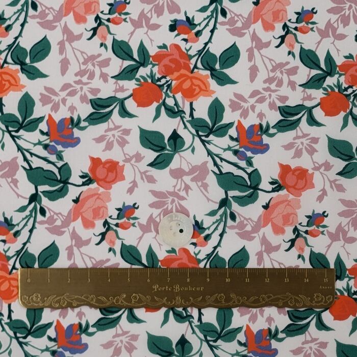 ・輸入リバティプリントは、ミミ端に色抜けやズレがあるため、当店では有効生地幅を約130cmとご案内しております。